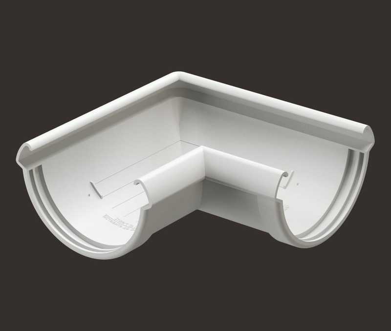 Угловые элементы устанавливаются как на внешних, так и на внутренних углах кровли и предназначены для соединения желобов.