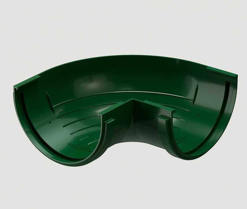 Угловые элементы устанавливаются на внешних углах кровли и предназначены для соединения желобов.